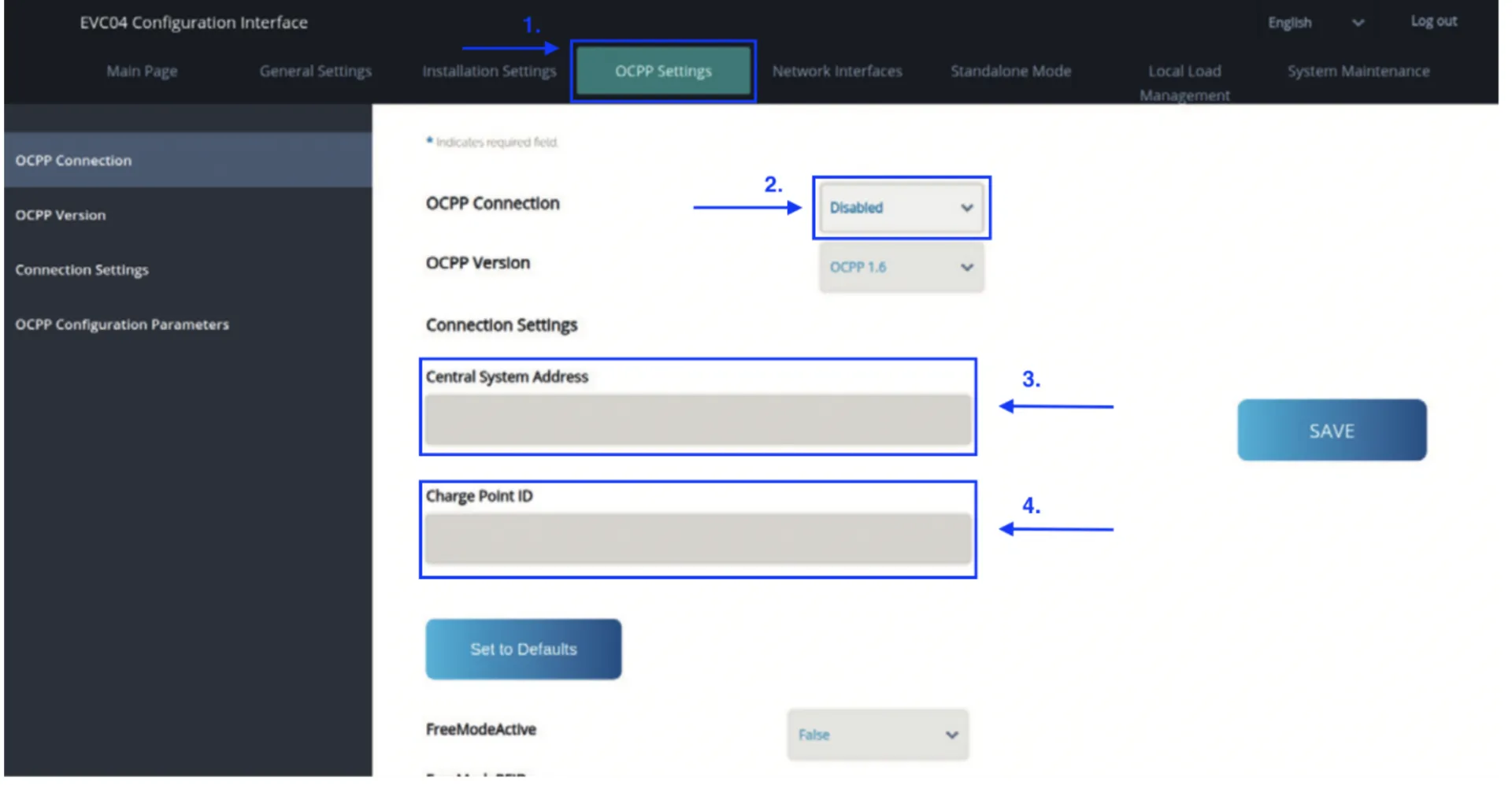 Step 4: As soon as you are in the webui, go to the OCPP Settings and activate the OCPP Connection. Copy the OCPP link from the app: